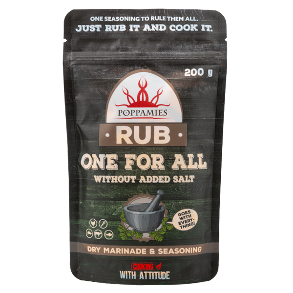 Una miscela di spezie che si abbina a tutti i tipi di piatti! Il Rub Poppamies One For All è una miscela di spezie che si abbinano bene a vari tipi di piatti. Alla miscela non è stato aggiunto sale, per cui può essere usata in abbondanza.