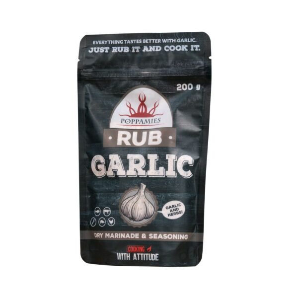 Poppamies Garlic Rub è una miscela con un deciso sapore di aglio e erbe provenzali. Ingredienti: aglio, sale, cipolla, rosmarino, timo, maggiorana, acido citrico, basilico, origano, aroma di limone.