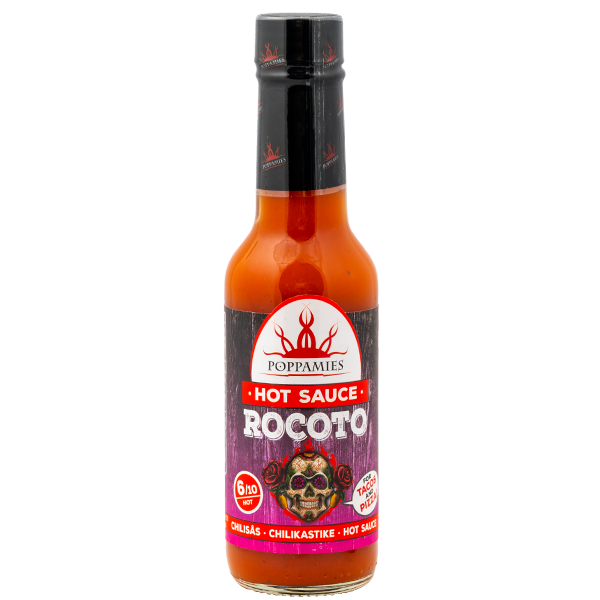 Il leggendario peperoncino Rocoto è fruttato e amatissimo dagli appassionati di piccante! Il sapore della salsa al peperoncino Rocoto di Poppamies è arricchito da note speziate caraibiche.